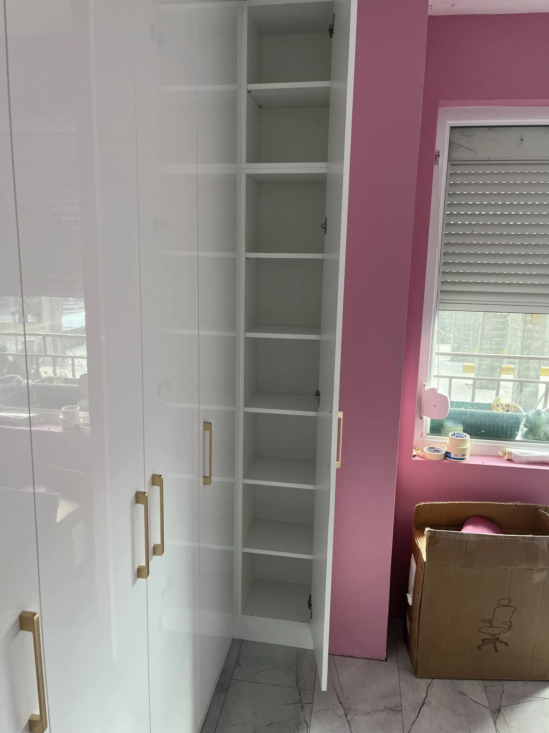 Корпус: Всички мебели в проекта са с корпус изработен от ПДЧ бяло шагре w960 ST7 на EGGER